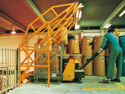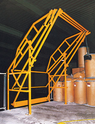 Construction robuste autoverrouillée capable de retenir un transpalette électrique.